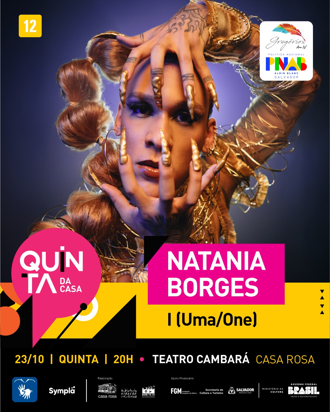 A cantora, compositora, produtora musical e diretora criativa soteropolitana Natania Borges apresenta o show “I (Uma/One)” no projeto “Quinta da Casa” da Casa Rosa no dia 23 de outubro, às 20h. No palco do Teatro Cambará, ela faz uma performance que é, ao mesmo tempo, rito e espetáculo, festa e cura: uma celebração da música preta contemporânea que conecta passado e futuro, espiritualidade e corpo, o íntimo e o coletivo. O espaço tem acessibilidade arquitetônica e o evento terá tradução em Libras.