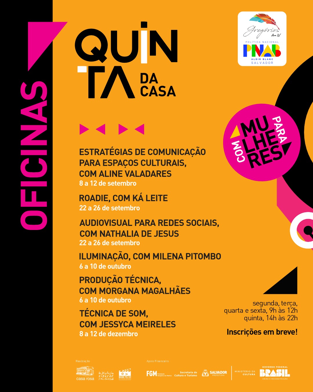 A partir do projeto “Quinta da Casa”, a Casa Rosa promove, de setembro a novembro, seis oficinas de áreas técnicas das artes feitas por mulheres e para público também de mulheres: Estratégias de Comunicação para Espaços Culturais, com Aline Valadares; Roadie, com Ká Leite; Audiovisual para Redes Sociais, com Nathalia de Jesus; Iluminação, com Milena […]